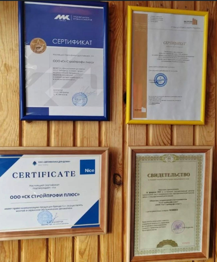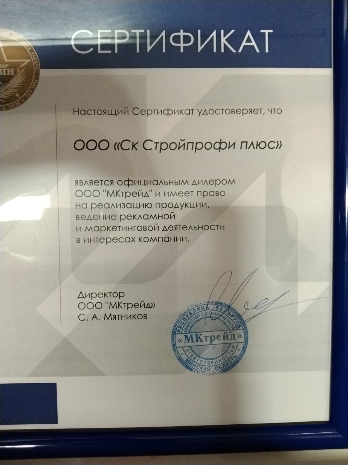 Работаем официально, договор, акты, сертификаты качества и гарантию на все наши работы.